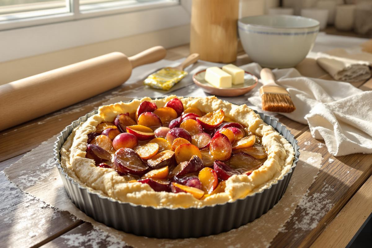 - Il retient l’humidité, surtout si la garniture est juteuse — tomates, prunes, courgettes ou appareil à quiche bien crémeux.